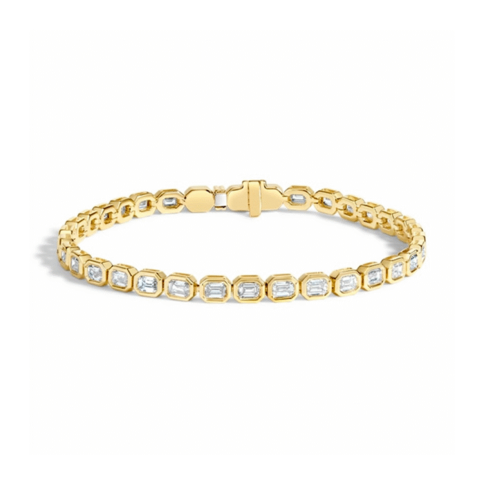Amira Solitaire Tennis Bracelet with IGI Certified Emerald Cut Diamonds with HUID Hallmarked Gold Purity in 18KT 750 & 14KT 583