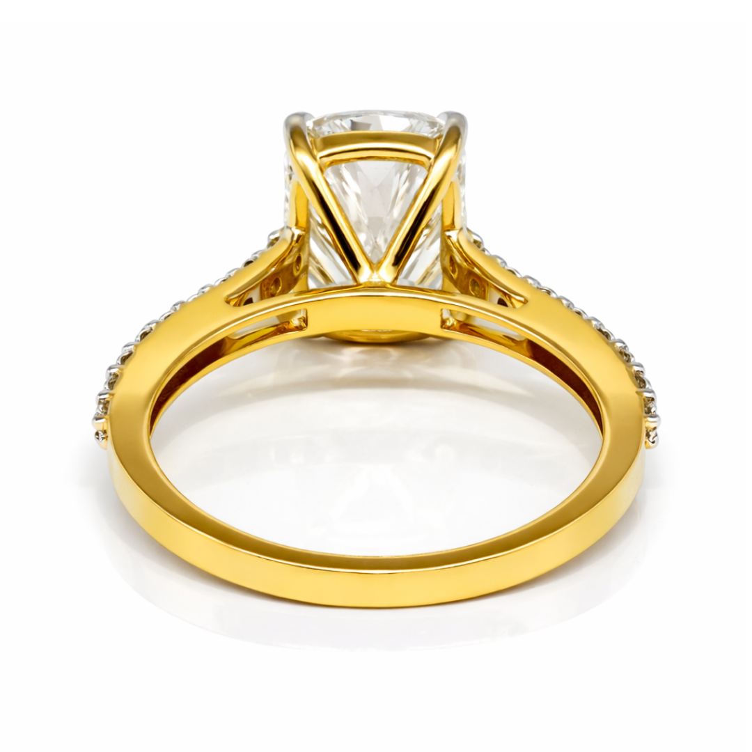 Aster solitaire diamond ring features elevated cushion long cut solitaire diamond in classic side diamond look suitable for engagement rings or for a perfect anniversary gift. Moreover, the Aster solitaire diamond ring blends refined design with lab grown diamonds. In addition, it delivers lasting brilliance while remaining an ethical choice, as a result offering modern luxury without compromising on quality. Most importantly, it reflects Diamondiary’s commitment to responsible fine jewellery.