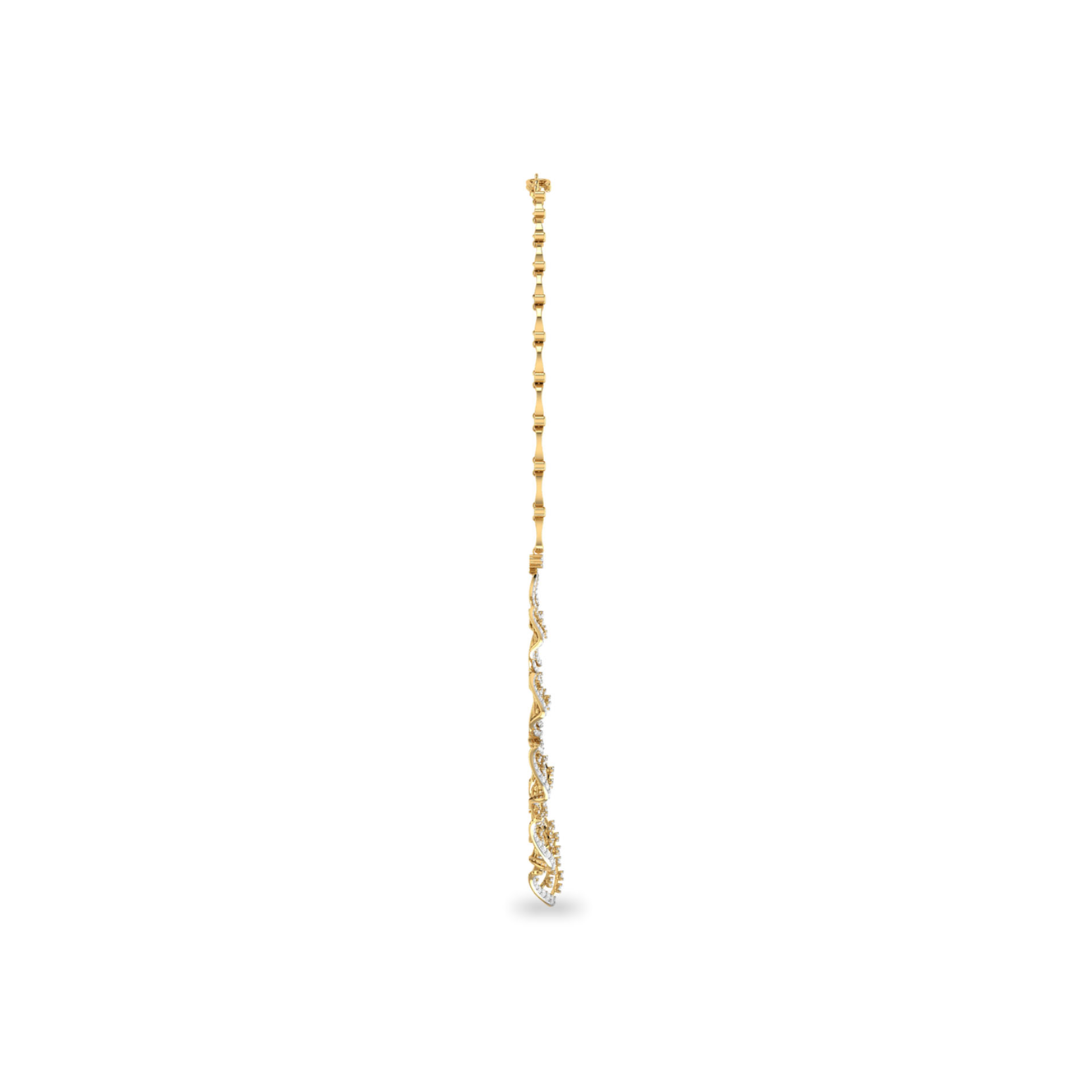 Celine diamond necklace in 18KT & 14KT Gold. This lustrous diamond necklace features modern designed for graceful look in yellow gold encrusted with sparkling round diamonds. This necklace is available in a range of metal options and your choice of natural or lab grown diamonds. We offer a free design service for any customised changes that you may require.