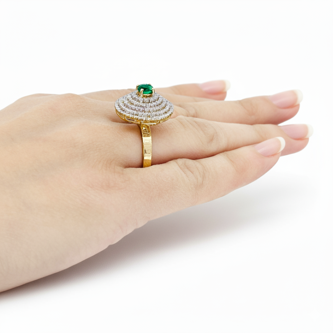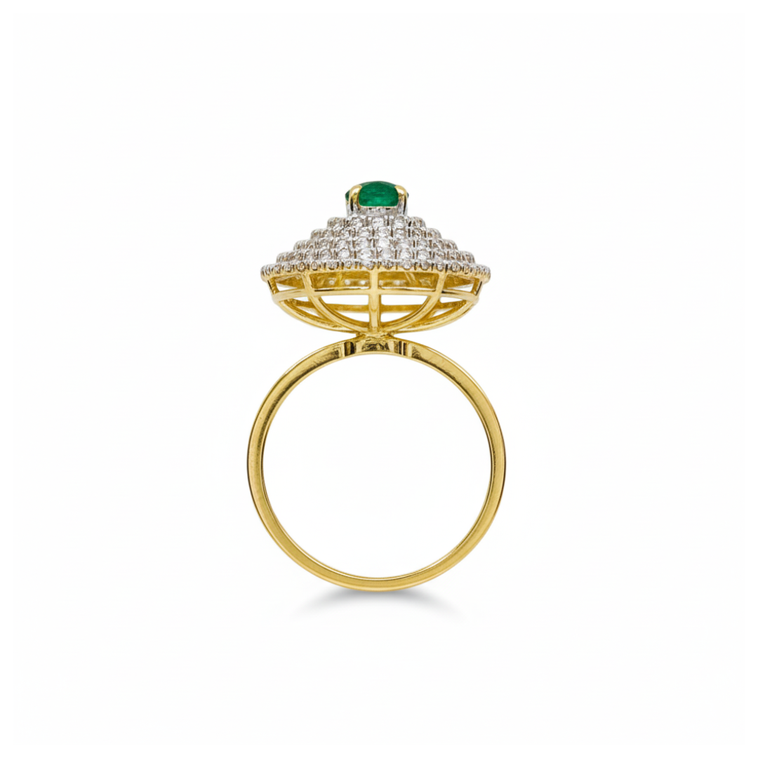 Jasmine Cocktail Gemstone Ring with Green Emerald Gemstone & IGI Certified Diamonds with Hallmarked HUID Gold in Purity 18KT 750 & 14KT 583