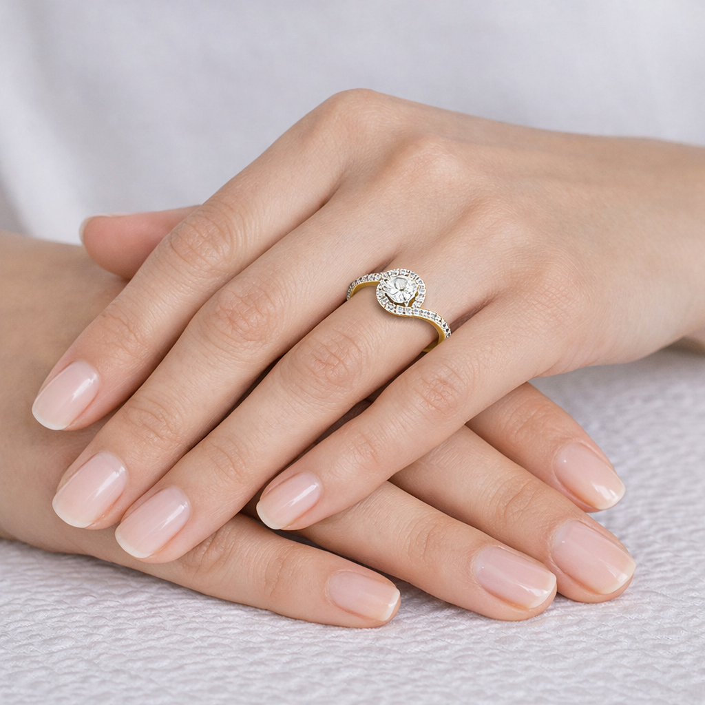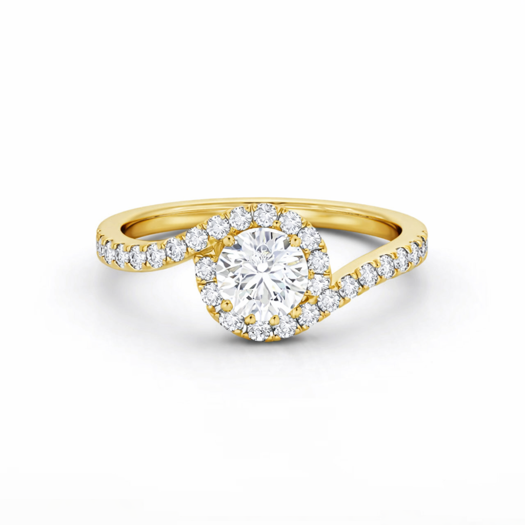 Liah solitaire ring features halo with round diamond in a swirling design suitable for everyday wear or for a perfect gift. Moreover, the liah solitaire ring blends refined design with lab grown diamonds. In addition, it delivers lasting brilliance while remaining an ethical choice, as a result offering modern luxury without compromising on quality. Most importantly, it reflects Diamondiary’s commitment to responsible fine jewellery.