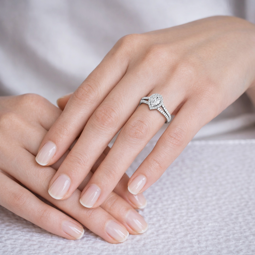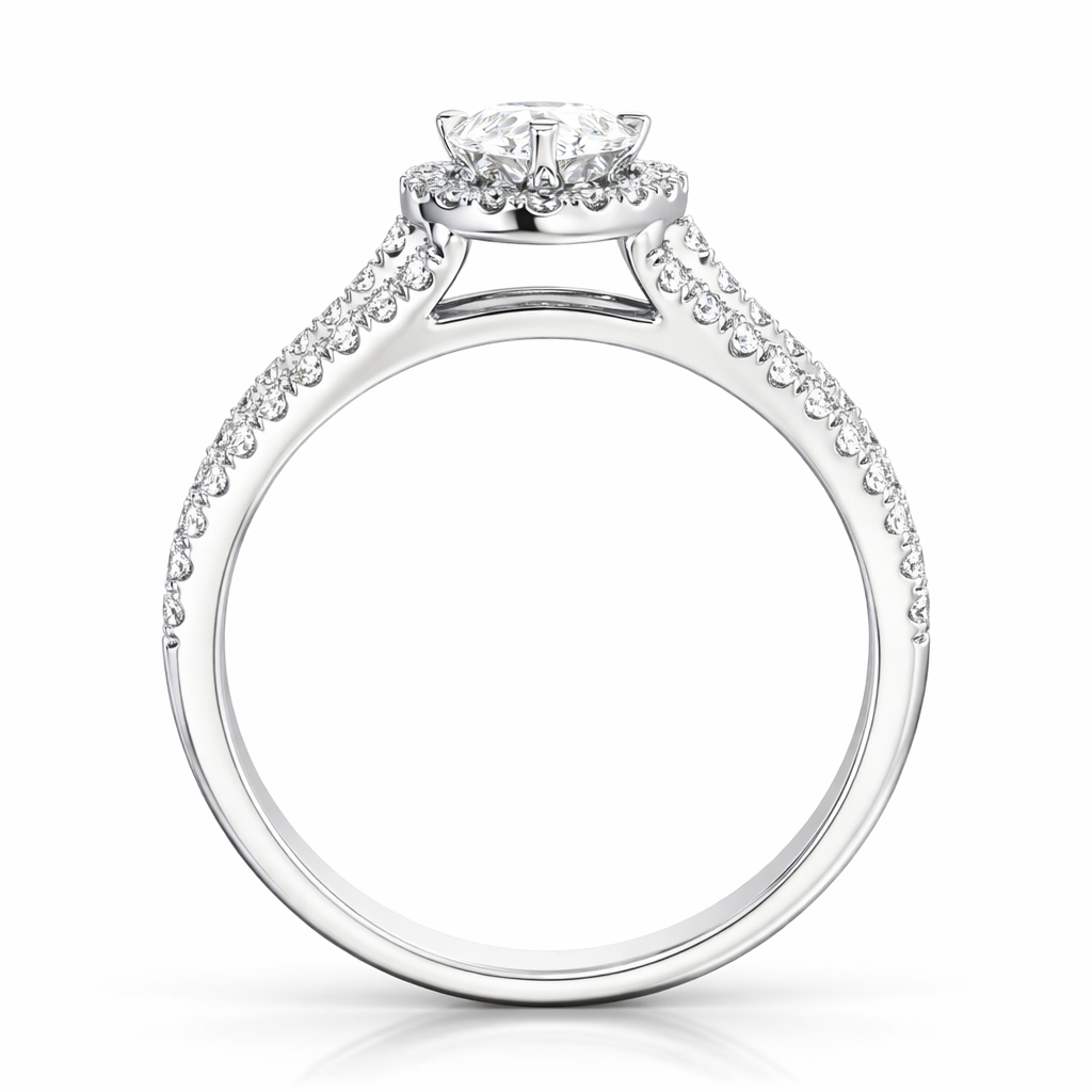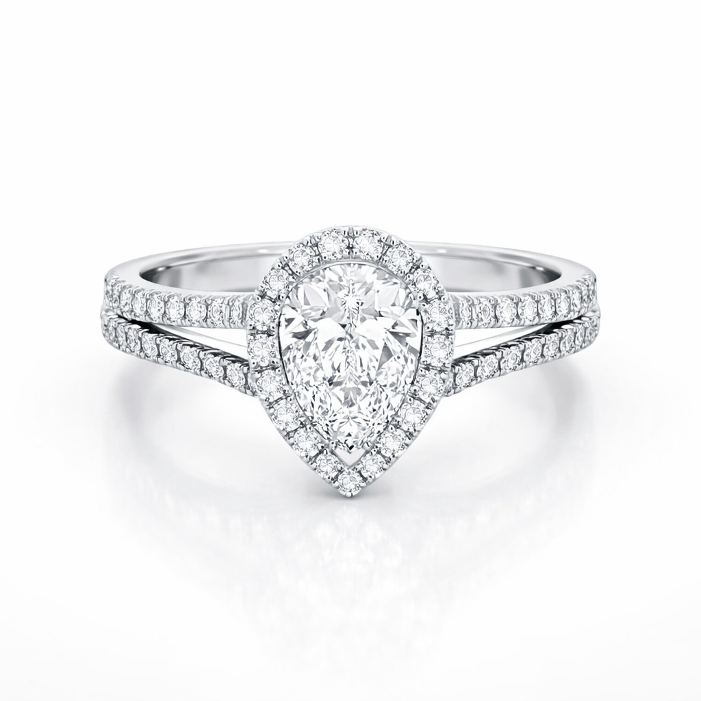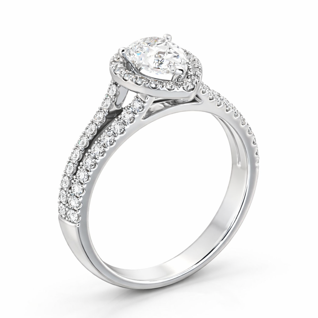 Luna solitaire ring features halo pear diamond split band design perfect for engagement ring or for a perfect gift. Moreover, the luna solitaire ring blends refined design with lab grown diamonds. In addition, it delivers lasting brilliance while remaining an ethical choice, as a result offering modern luxury without compromising on quality. Most importantly, it reflects Diamondiary’s commitment to responsible fine jewellery.
