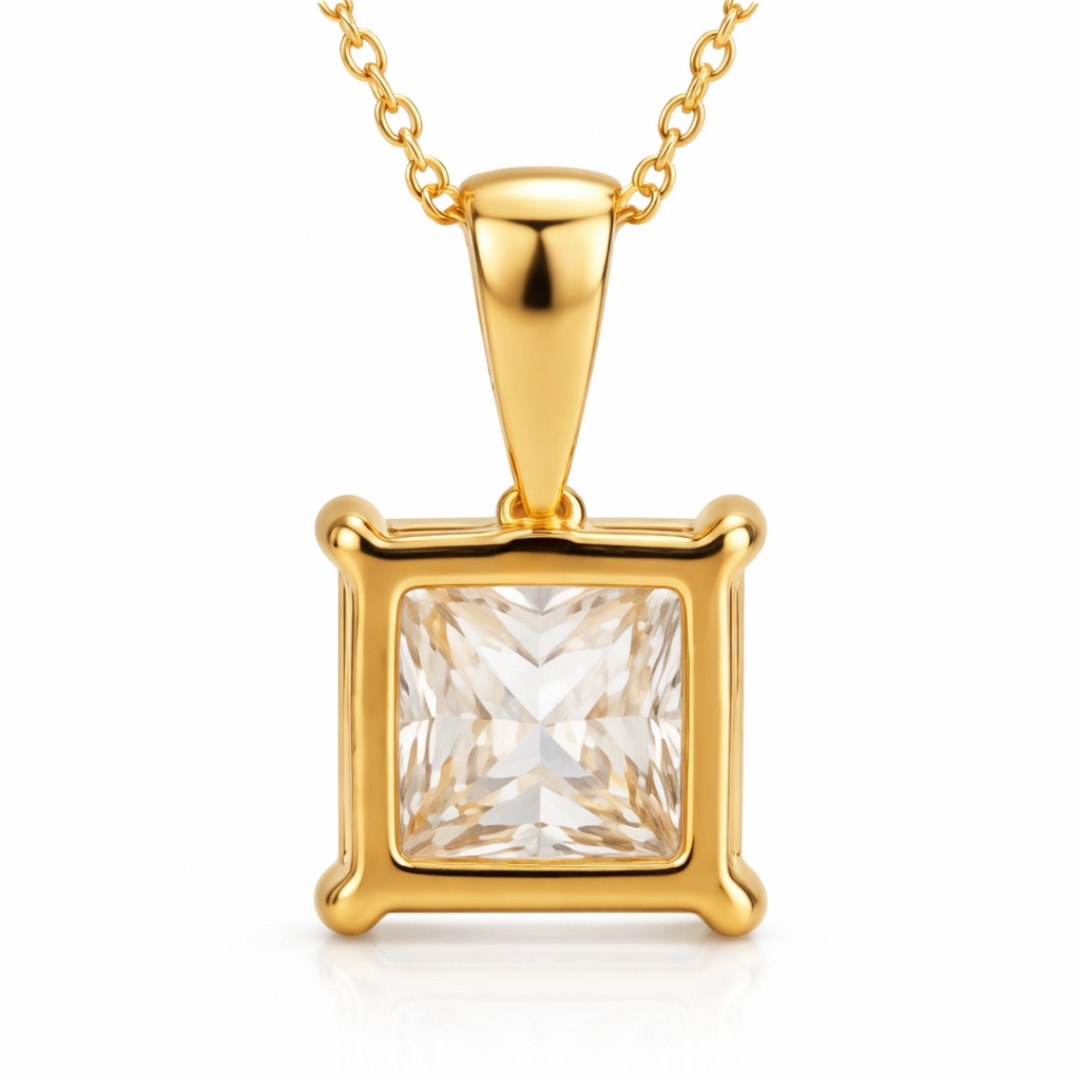 Naomi Princess Cut Solitaire Diamond Pendant with IGI/SGL Certified Diamonds and HUID Hallmarked Gold in Purity 14KT & 18KT.