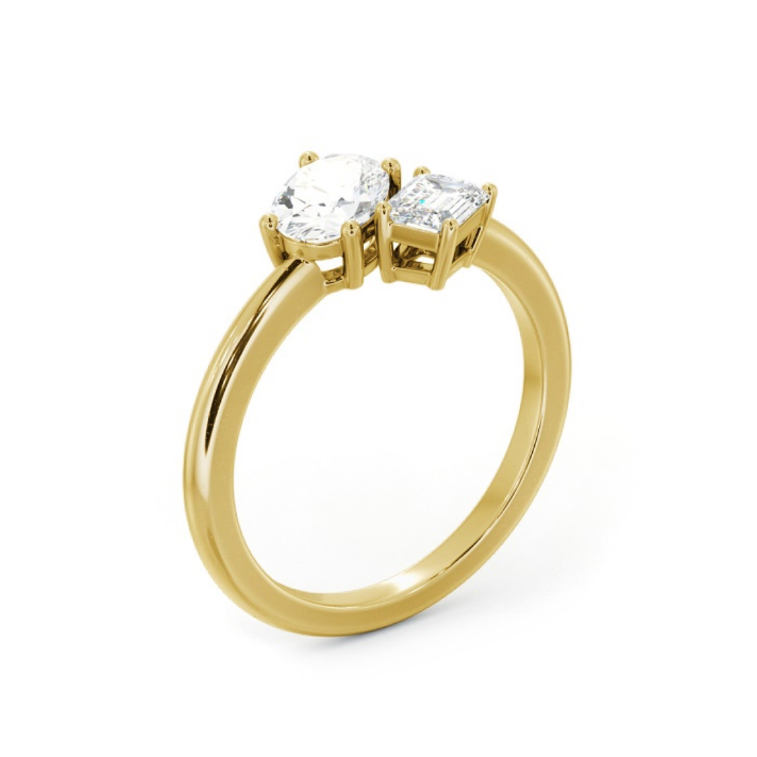 Toi et Moi solitaire ring features trending dual solitaire look with oval and emerald solitaires suitable for everyday wear or for a perfect gift. Moreover, the Toi et Moi solitaire ring blends refined design with lab grown diamonds. In addition, it delivers lasting brilliance while remaining an ethical choice, as a result offering modern luxury without compromising on quality. Most importantly, it reflects Diamondiary’s commitment to responsible fine jewellery.